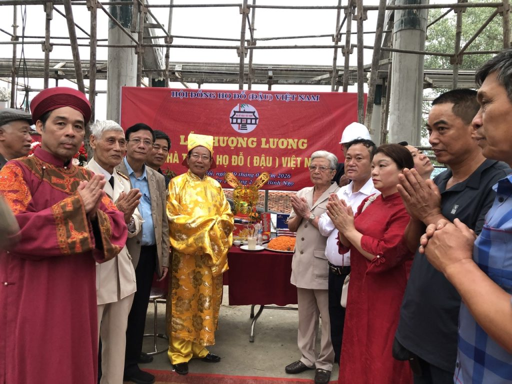 Hôm nay là một ngày trọng đại của họ Đỗ (Đậu) Việt Nam. Nhà thờ Tổ dòng họ Đỗ (Đậu) Việt Nam được khởi công xây dựng từ ngày 1/12/2025 (12/10 Ất Tỵ), tại số 7 Ngõ Chùa Phố Văn La, phường Kiến Hưng, Hà Nội. Sau 04 tháng khẩn trương thi công, hôm nay ngày 29/3 /2026 (ngày 11/2 năm Bính ngọ ) Hội đồng họ Đỗ (Đậu) long trọng tổ chức lễ cất nóc nhà thờ Tổ (lễ Thượng lương). Về dự có các ông trong ban lãnh đạo, cựu lãnh đạo Hội đồng và đông đảo bà con ở nhiều tỉnh thành trong cả nước. Đúng 7h 30, thời khắc linh thiêng đã điểm. Trước bàn thờ có đủ hương hoa, lễ vật được bài trí nghiêm trang, ông Đỗ văn Trắc Chủ tịch Hội đồng họ Đỗ (Đậu ), ông Đỗ mạnh Hùng Phó chủ tịch kiêm Tổng thư ký, ông Đậu phi Thuần Phó chủ tịch kiêm chủ tịch CLB doanh nhân họ họ Đỗ (Đậu) VN và nhiều ông bà là thành viên BCH và các tổ chức của dòng họ, dông đảo bà con, thành kính làm lễ cất nóc nhà thờ. Thanh thượng lương vừa yên vị trên nóc nhà thờ, từ trời cao bỗng đổ xuống một trận mưa lành tưới nhuần mặt đất. Gió thổi, mưa bay, trời đất giao hòa hội tụ khí thiêng, trong sự vui mừng, hân hoan của con cháu dòng tộc. Lát sau trời hửng nắng trở lại khiến nhiều người thảng thốt: Sao thiêng thế – Họ Đỗ thiêng thể… Thiên thời – địa lợi – nhân hòa. Niềm ước mơ của con cháu dòng tộc Đỗ (Đậu) Việt Nam có ngôi nhà thờ Tổ được dựng lên gần khu di tích gò Thiềm Thừ- mộ Tổ dòng họ Đỗ (Đậu) VN nay đã thành sự thực.